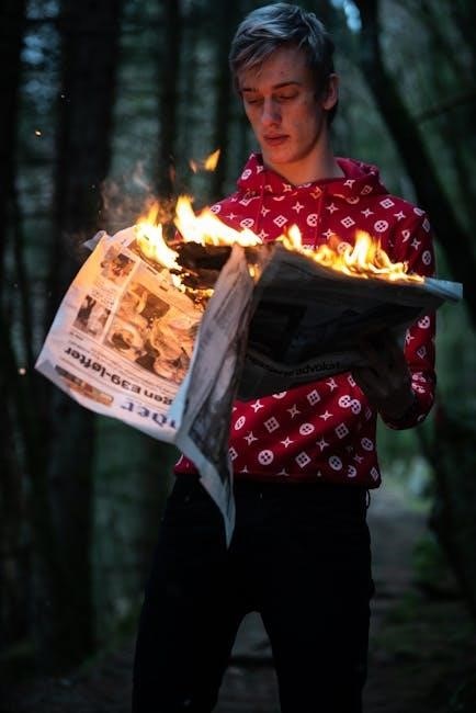 The “Catching Fire” PDF reveals significant character growth, particularly in Katniss Everdeen, who transitions from a survivalist to a reluctant revolutionary. She grapples with the consequences of her actions in the first Hunger Games and the weight of being a symbol of rebellion.