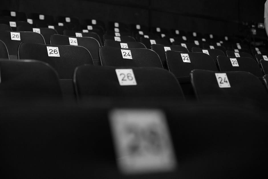 However, variations can occur, particularly in curved sections like the Dress Circle. Referencing a detailed PDF or diagram is vital to avoid confusion. Some plans may omit certain numbers or letters, so careful examination is necessary. Understanding this layout ensures you select seats that align with your preferences and viewing expectations.